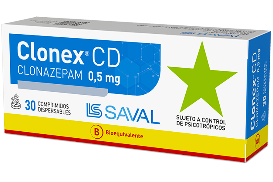 CLONEX CD 0,5 mg: envase con 30 comprimidos dispersables